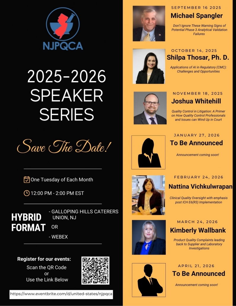 NJPQCA invites you to attend our 2025-2026 Monthly Meetings (in person or virtually). See the tables below for details and the topics and speakers. Please mark your calendars!