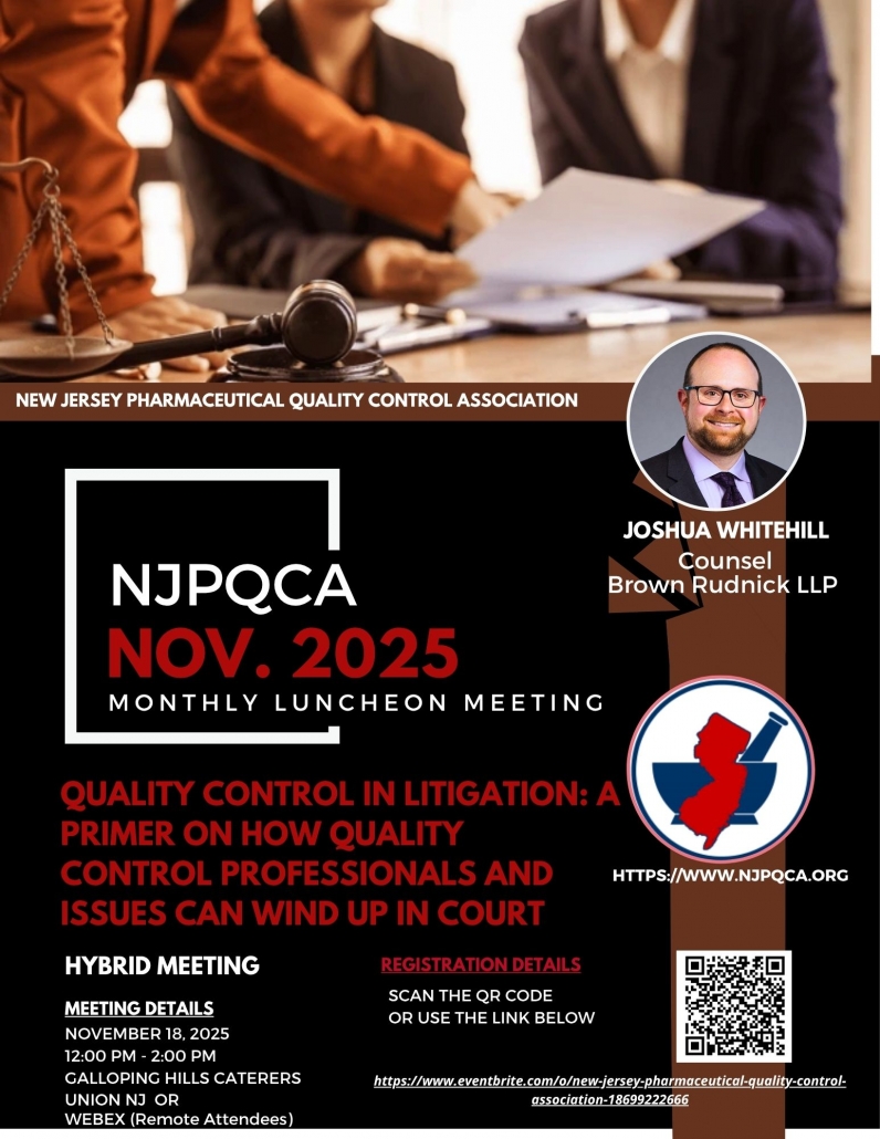 | November 18, 2025 (hybrid meeting): | Quality Control in Litigation: A Primer on How Quality Control Professionals and Issues Can Wind Up in Court | Joshua A. Whitehill Counsel, Brown Rudnick LLP |